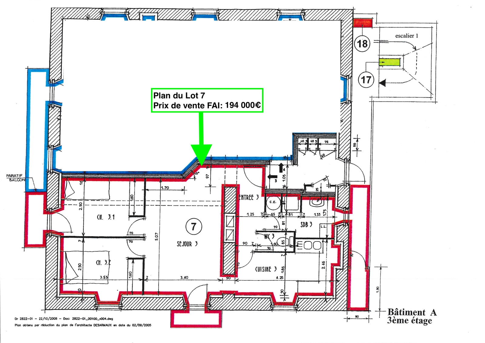 Entrée, cuisine, séjour, 2 chambres, 3 balcons, salle d’eau et WC séparés.