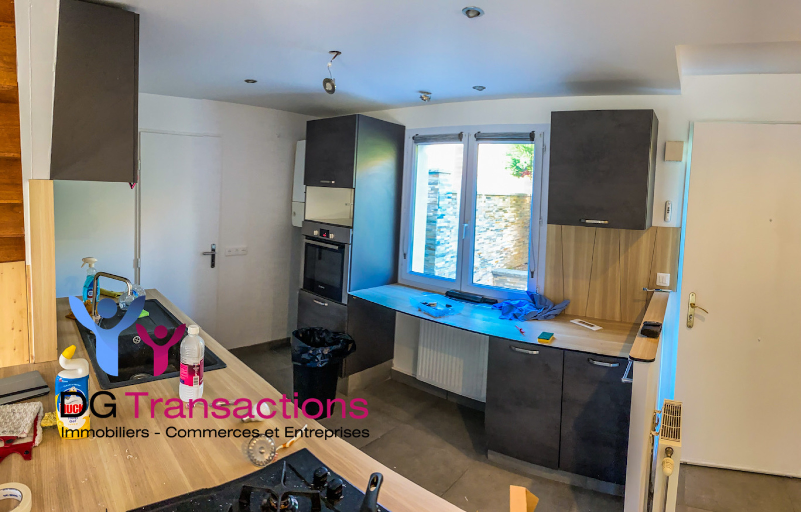 Le mobilier de cuisine est très récent, la pièce de vie mesure environ X m2